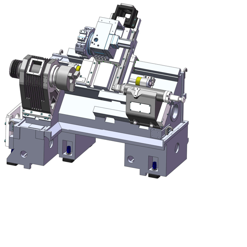 1、床身整体铸造,保持倾斜45°,有效提高排削性能。