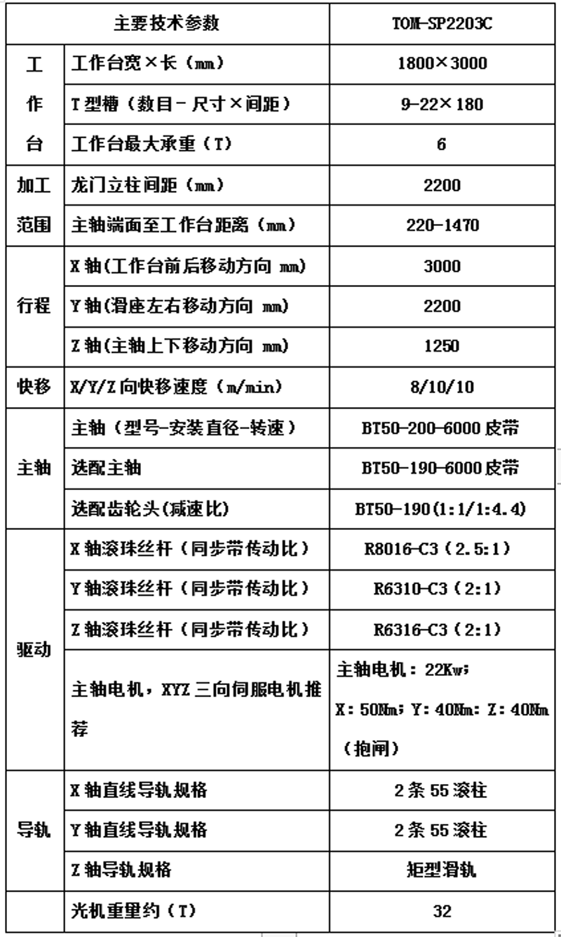 光机技术参数